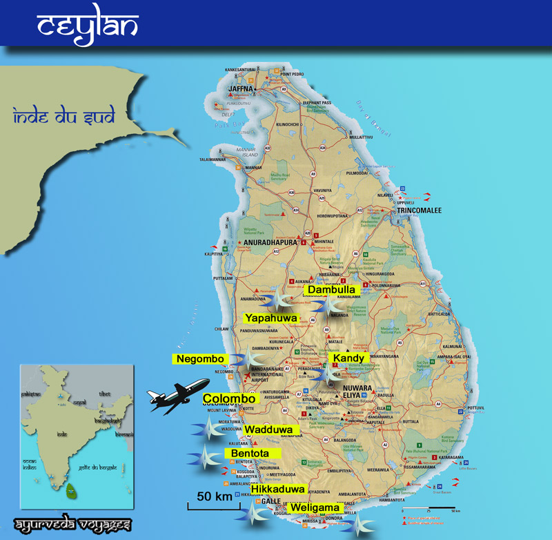 Aéroport L’aéroport international Bandaranaike se trouve à Katunayake, à 34 km au nord de Colombo et 8 km au sud de Negombo, tél.(94) 11 225.28.61. Confirmation de l’heure de départ des vols à ce numéro. Pas de taxe d’aéroport. Des bus partant de la gare routière, située de l’autre côté du parking, circulent entre 6h et 22h et desservent Bastian Mawatha à Colombo et la gare routière de Negombo. À la sortie du terminal, un guichet de taxis payables d’avance («prepaid taxis») offre souplesse et confort à des prix très raisonnables.