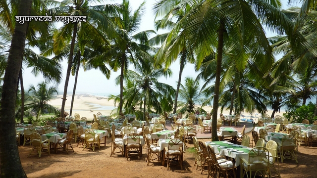 Le restaurant est à l'entrée du domaine et surplombe la falaise, les repas sont aussi servi dehors où la vue est magnifique. |