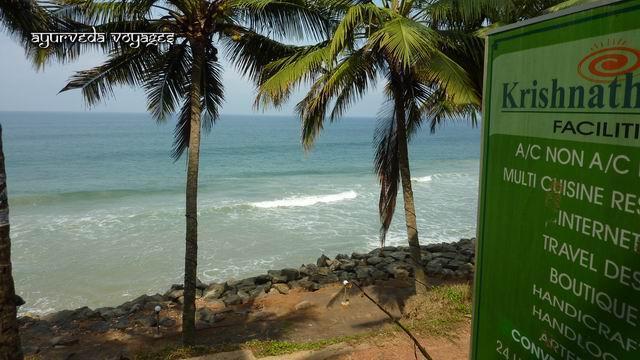 Le KRISHNATHEERAM se trouve sur la falaise de Varkala, au nord de la fameuse plage eponyme qui attire tant les touristes étrangers.