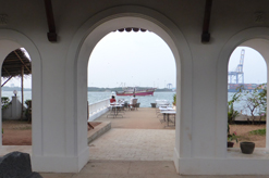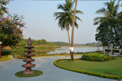 Il est situé sur une île au beau milieu de la rivière Mandovi, très au calme, avec une vue sur de l'eau et des herbes tout autour.